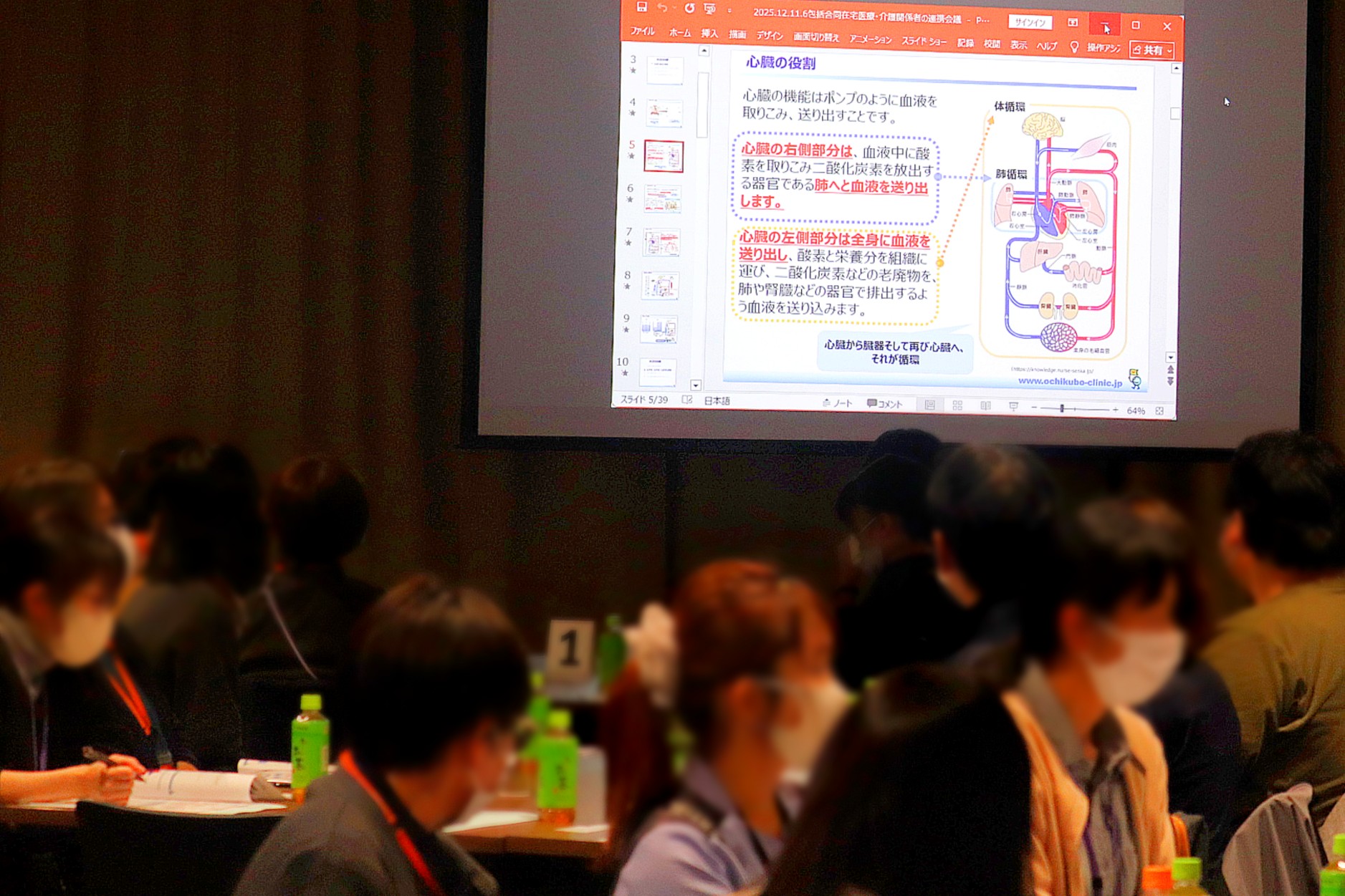 本会議では「心不全の理解 地域連携とケアマネジメント」をテーマに、在宅の高齢者の方の心不全への知識を深めるとともに、多職種による支援の在り方について活発な意見交換が行われました。